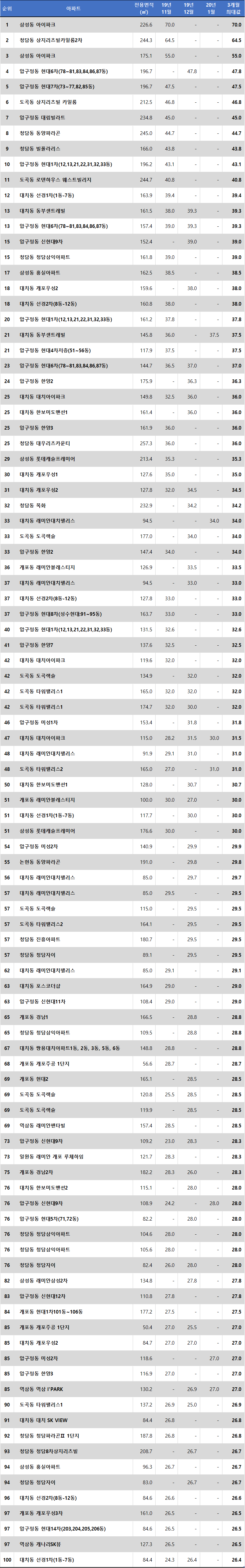 혹시 리스트에 없는 아파트의 순위가 궁굼하시다면 댓글 남겨주면 확인해 드리겠습니다.