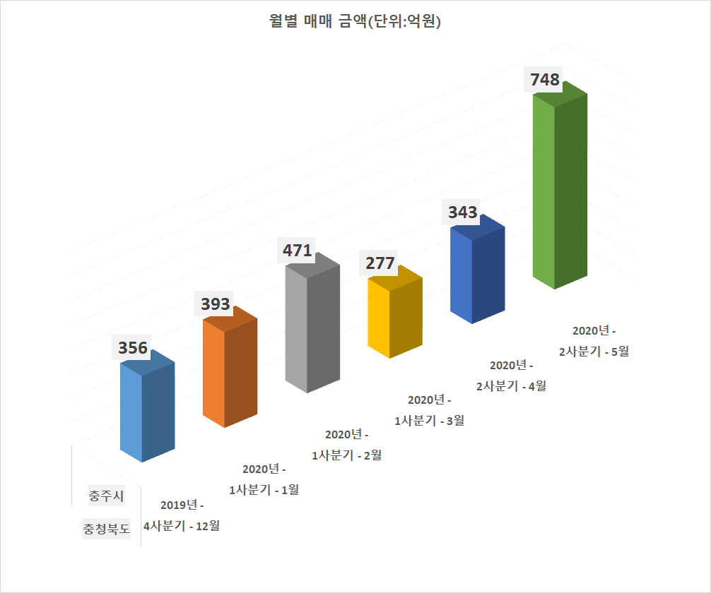 1. 충주시에서 월별 매매 추이(거래금액, 거래량, 평균 거래 금액)