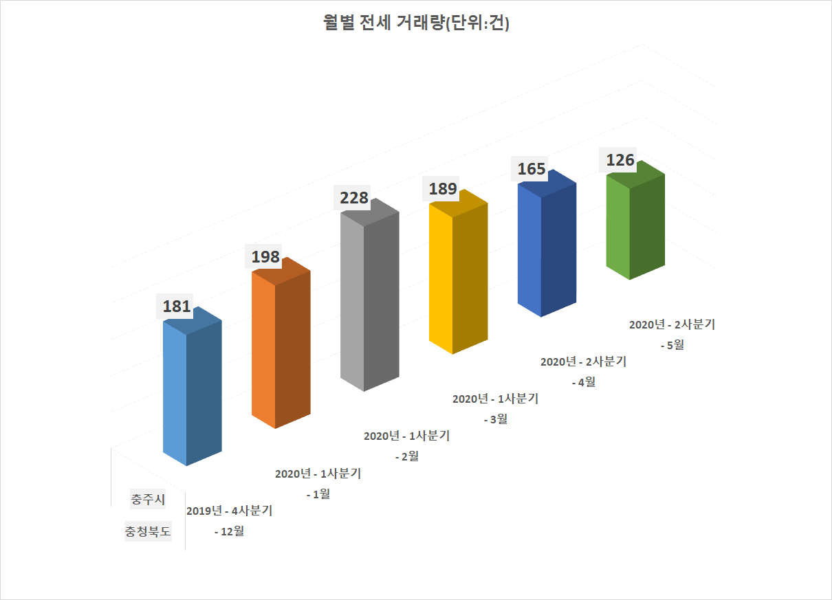 ▷충주시에서 월별 전세 추이(거래금액, 거래량, 평균 거래 금액)