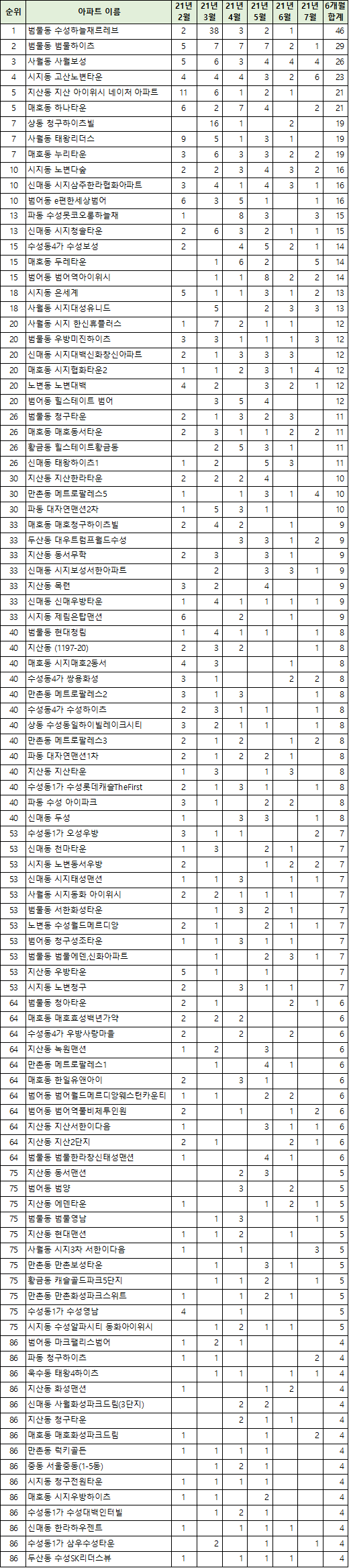 - 2021년 8월 6일 실거래가 추출 기준 - 6개월 기준 - 21년 2월 ~ 21년 7월