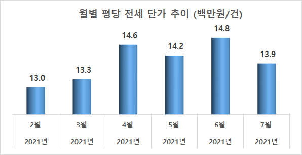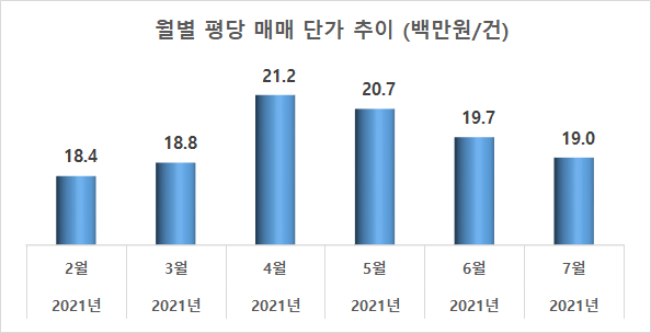 - 월별 매매 거래 평당 단가(백만원/평)
