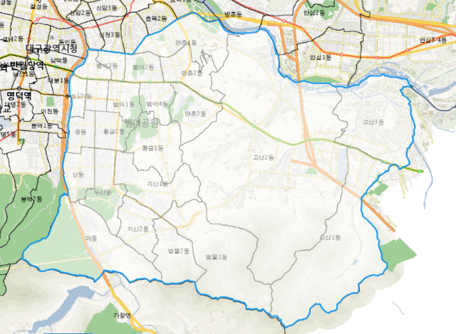 (대구광역시 수성구 : 욱수동, 중동, 지산동, 파동, 황금동 등 기준)