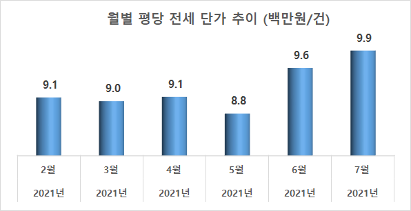 - 월별 매매 거래 평당 단가(백만원/평)